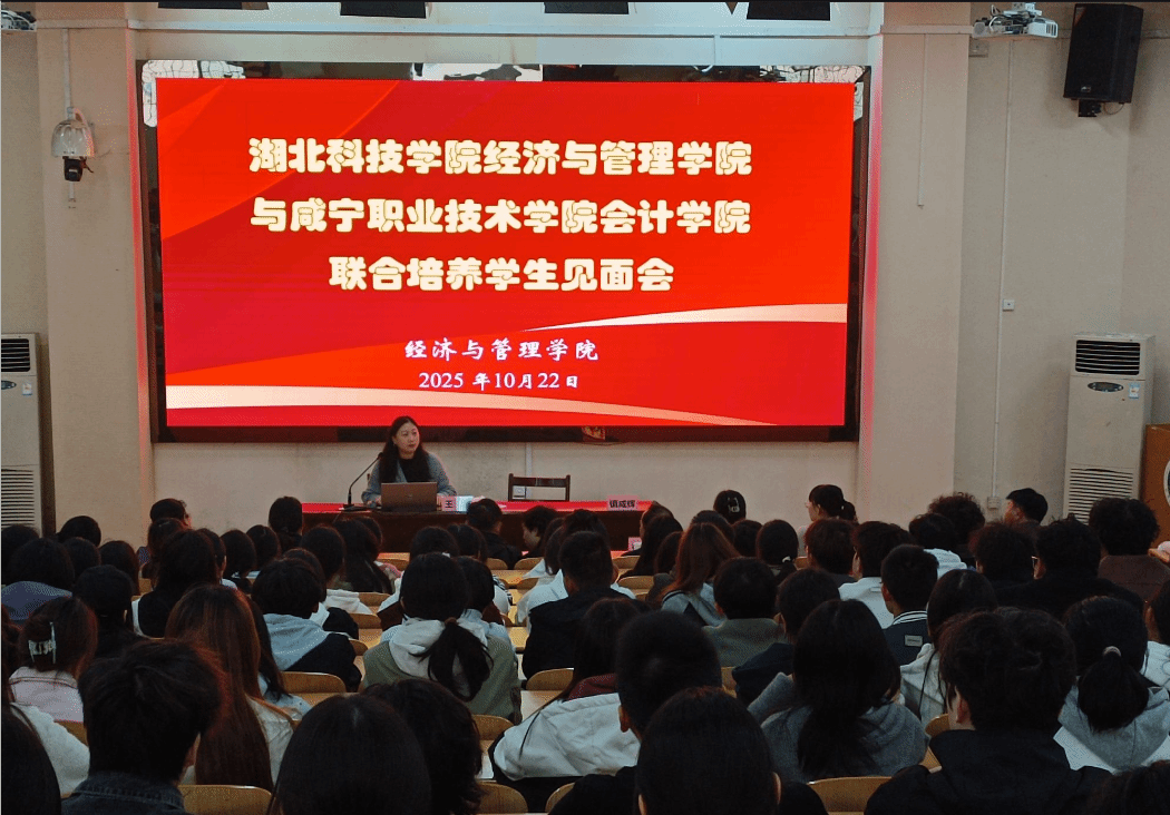 为深化大数据与会计专业与湖北科技公司专本联合人才培养项目建设,落实专本贯通培养,积累本科专业办学经验,太阳成集团tyc33455cc邀请湖北科技公司经济与管理公司财务管理专业领导专家,于2025年10月22日下午,在励志楼201教室隆重举行专本联合培养宣讲专题活动。活动以“明晰培养路径,规划职业蓝图”为主题,旨在让同学们更全面、深入地了解联培项目的具体政策、学业衔接要求以及未来规划。湖北科技公司经济与管理公司经理定光平教授、分管教学副经理王娜副教授、财务管理专业负责人蔡秀丽副教授和专业教师陈芳教授受邀参加活动。太阳成集团tyc33455cc班子成员、大数据与会计专业教研室主任、专业骨干教师及全体联培班员工共同参与了此次活动。宣讲会由党总支书记镇咸辉主持。