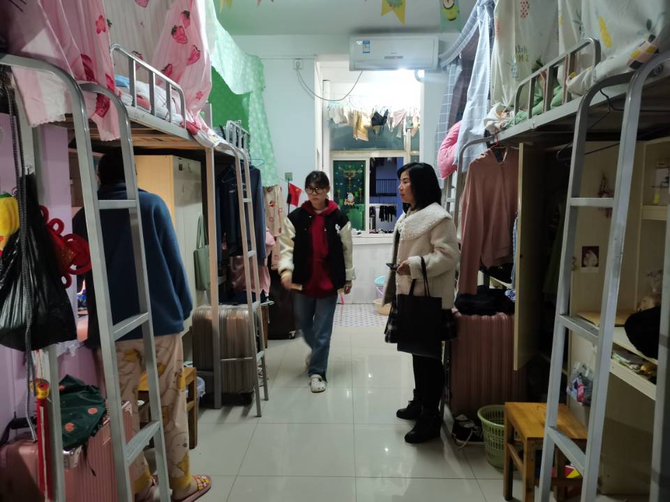 在查寝过程中,杨经理、杨科长带领辅导员对员工文明寝室评比工作进行现场宣讲,并对排查出的问题进行现场整改。