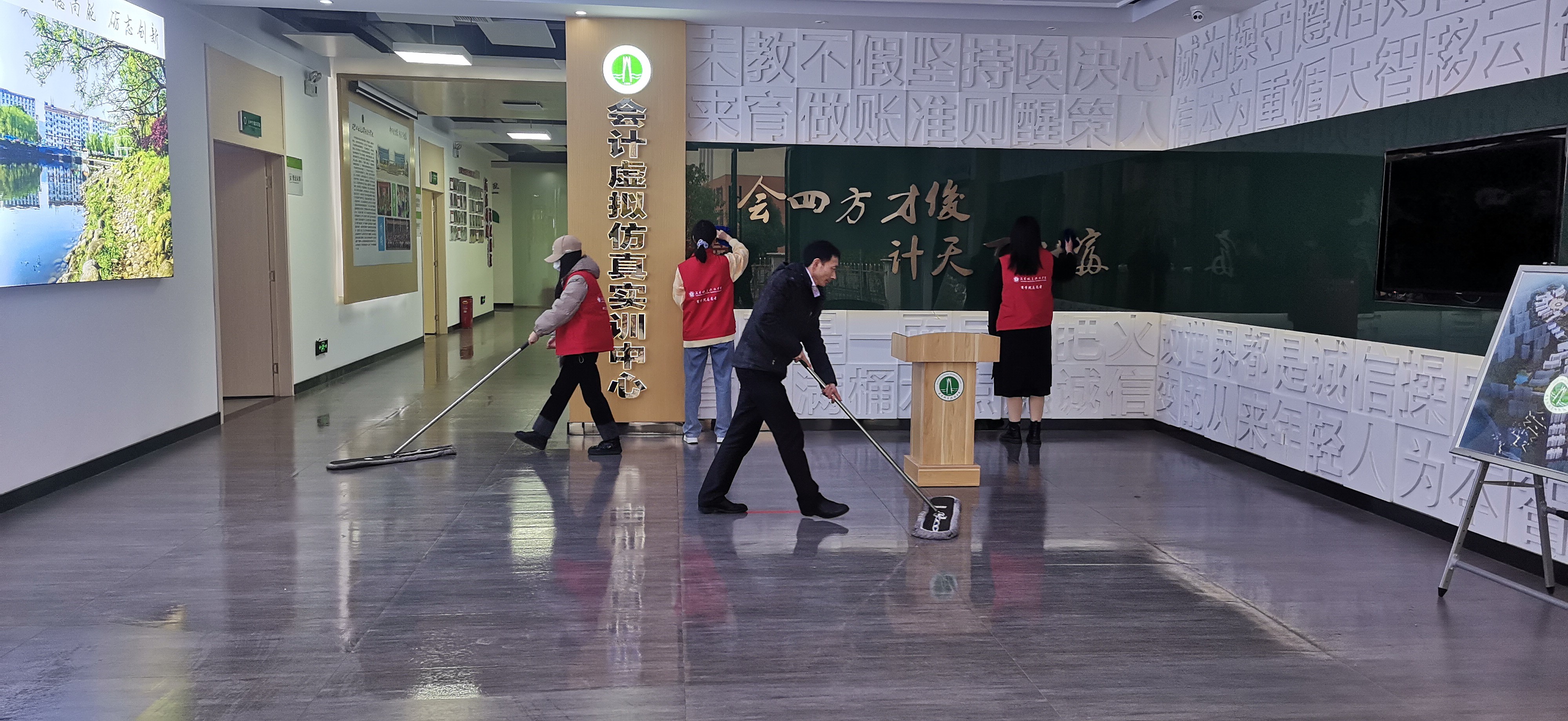 每个劳动日,太阳成集团tyc33455cc轮流安排各班级全体员工彻底打扫会计实训中心。2月22日下午,在实训中心负责人的督导下,员工们分工明确,认真清扫,不放过一处卫生死角,呈现出一派热火朝天的劳动场面。除此之外,还重点检查了消防器材、宿舍门窗、外用铁栏杆等方面,排除了安全隐患,亲手创造一个干净舒适的实训环境。