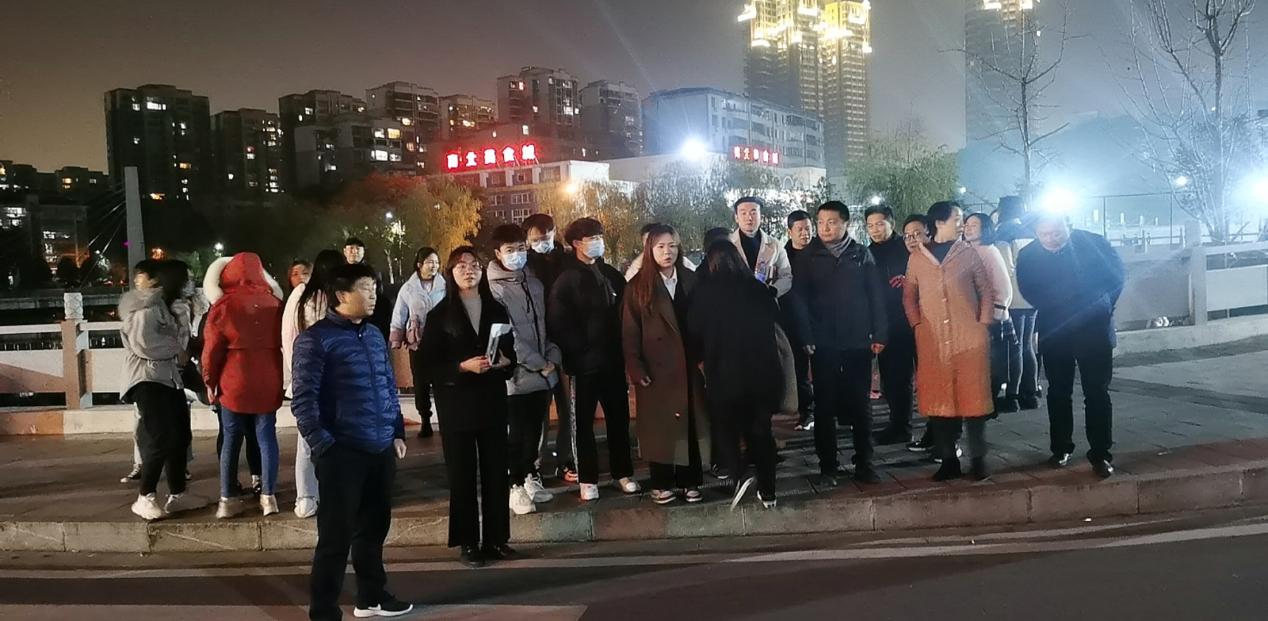 师生在丹枫美食城门口集合