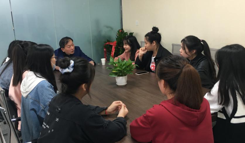 操小龙老师和实习员工进行了集中交流。他询问了员工的学习和生活情况,了解了员工培训的内容,探讨了如何进一步深化工学结合,员工对专业教学模式和教学方法提出了很好的建议。会计专业2018级员工王静说,“希望在校内教学中多讲些实训的内容,增加实操的机会”。会计专业2018级员工尹伊梅说,“这次培训主要学习的是企业在公司注册、银行账户开立、印鉴办理方面的知识,我们很感兴趣,希望在校就能学到这些内容”。财务管理专业2018级员工张雪银说,“希望实习时间不要都集中在第六学期,平时也要有到实习单位实习的机会”。