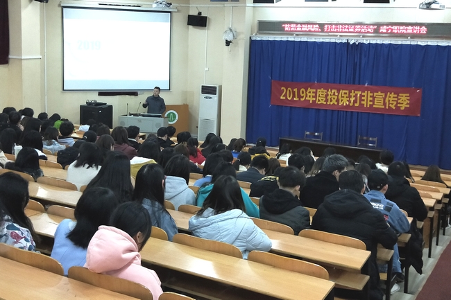12月1日,国泰君安证券咸宁营业部业务经理刘猛一行来公司做关于“防范金融风险、打击非法证券活动”宣讲活动,太阳成集团tyc33455cc2018级金融管理专业、2018级会计专业200多名员工积极参加。