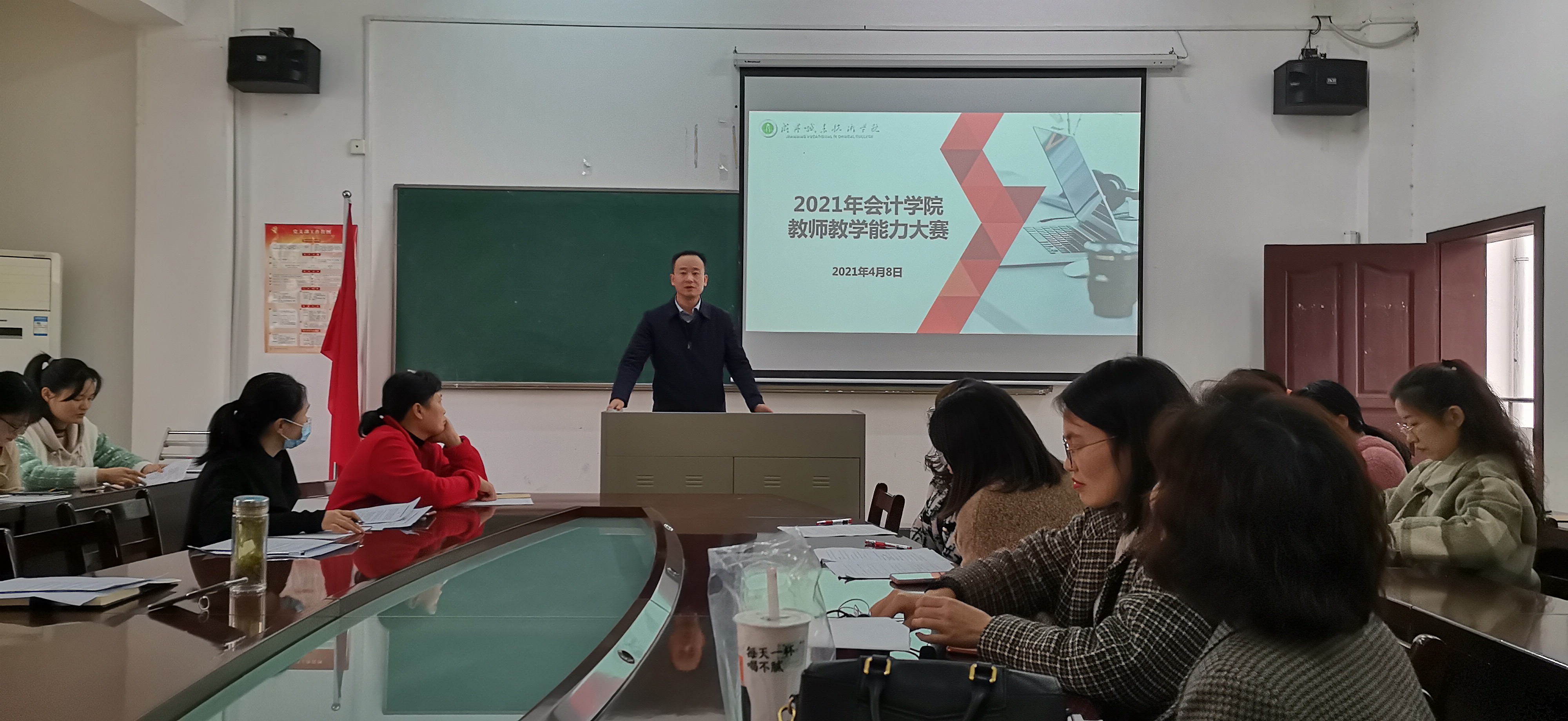 “沙场点兵,教学相长”。为深化教学改革,提高教师教学能力,提升课堂教学质量,4月8日下午,太阳成集团tyc33455cc2021年度教师教学能力大赛决赛在院会议室拉开帷幕。本次大赛由教学经理胡志华主持,特邀教务处余敏处长、太阳成集团tyc33455cc党总支书记镇咸辉、经理何慧玲、以及高敏、王利红老师担任评委,太阳成集团tyc33455cc无课教师现场观摩。