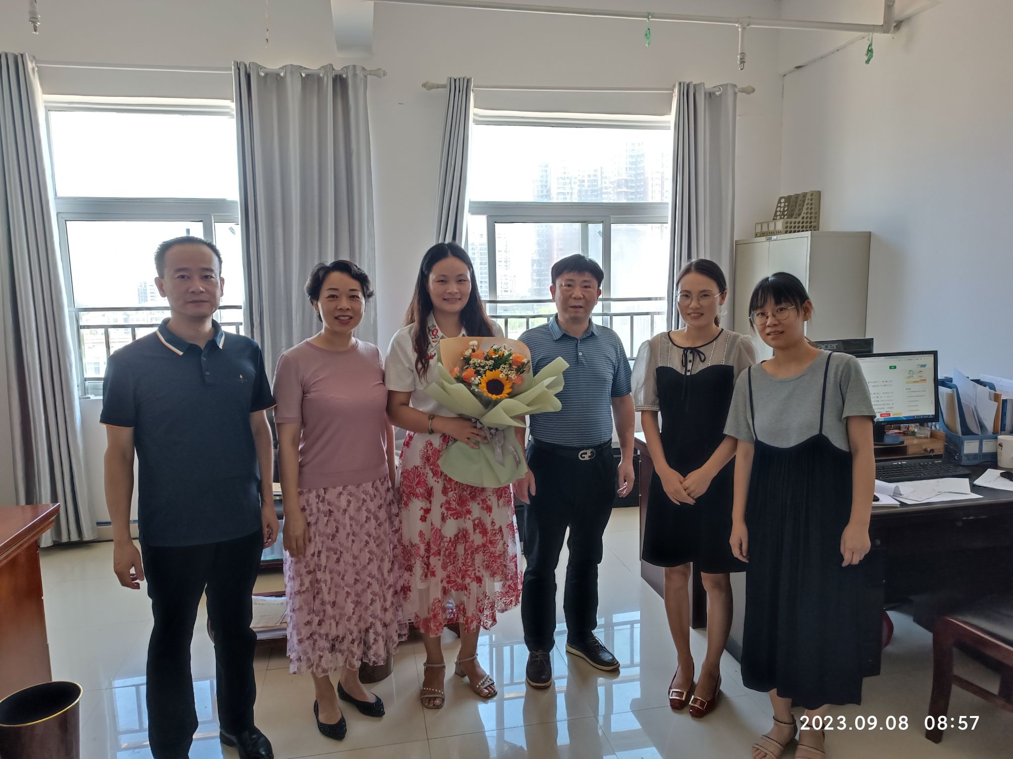 首先,太阳成集团tyc33455cc领导班子深入办公一线,向全体教师致以崇高的敬意和节日的问候。同时向优秀教师代表曾罗婧递上鲜花,表达对教师们的深深敬意和感谢之情。