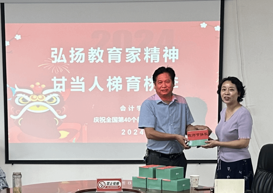 随后,公司干部为李茂荣、许泽想、吕文吉、刘健树、雷青、袁康丁等六位表现突出的教师代表颁发了慰问品,表达公司对他们辛勤工作的肯定和支持。受慰问的教师们纷纷上台发言,分享了他们的教学经历和对教育事业的热爱。部分参会教师代表也发表了感言,对公司的关怀和支持表示感谢,并表示将继续努力,为公司的发展贡献更多的智慧和力量。