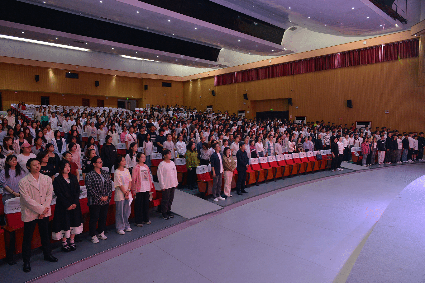 典礼伊始,全场师生肃立,奏唱中华人民共和国国歌,激昂的旋律激荡着每个人的爱国情怀与奋斗决心。
